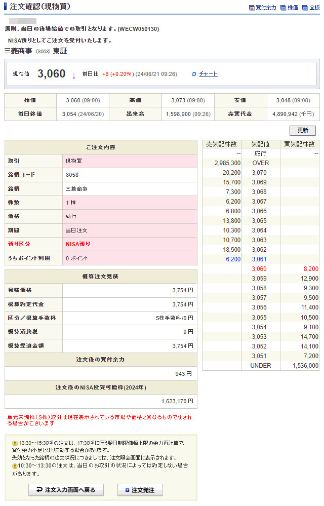 数社からの配当で余力が少しだけ口座に出来たので24日に配当が入る「三菱商事」を1株だけ買いました。一応、配当再投資です。