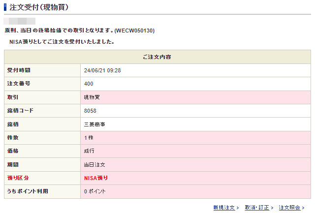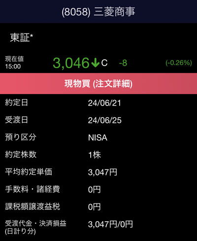 これで「三菱商事」はNISA口座で4株保有になり平均取得単価は2,628円となりました。