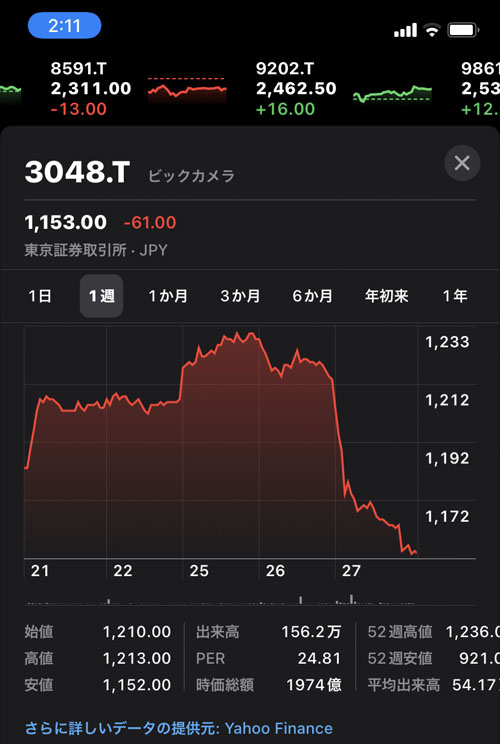 「日本BS放送株式会社が「ビックカメラ商品券」の株主優待を廃止することを、2022年7月26日の15時に発表した。」