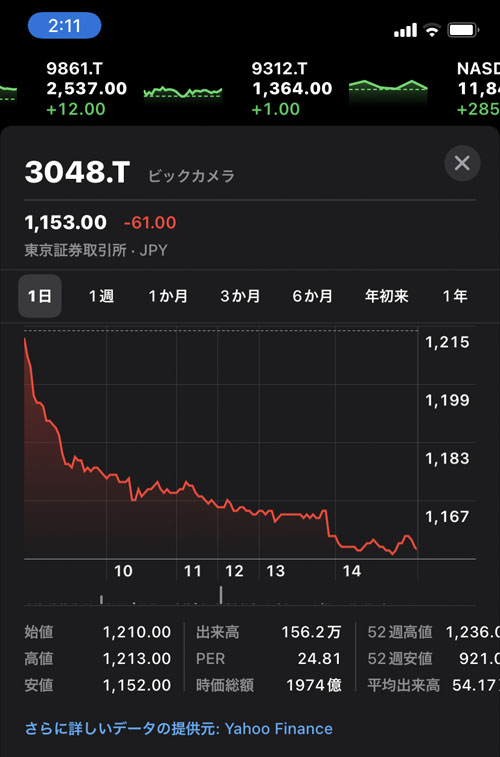 昨年末に購入して以来、自社株買いもあり順調に上がっていた株価が・・・