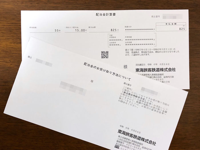 去年の秋に株式を分割してから買い始めたJR東海からも「重要書類」が届きました。