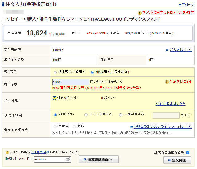 歩いて稼いだ資金を「ニッセイNASDAQ100インデックスファンド」へ|2024.6.25 先日、換金の手続きをしていた「クラシルリワード」分が現金化され楽天銀行口座に入りました。 CYBERAGENTから1,000円の入金! 「クラシルリワード」なので「ニッセイNASDAQ100インデックスファンド」へ入れます。 今年からニッセイNASDAQ100インデックスファンドはNISA口座で運用しています。 約定は27日(木曜日)です。 相変わらずの円安なので大した口数にはならないと思いますがNASDAQはこのところ調整相場となっています。そろそろリバが来そうですが・・・。