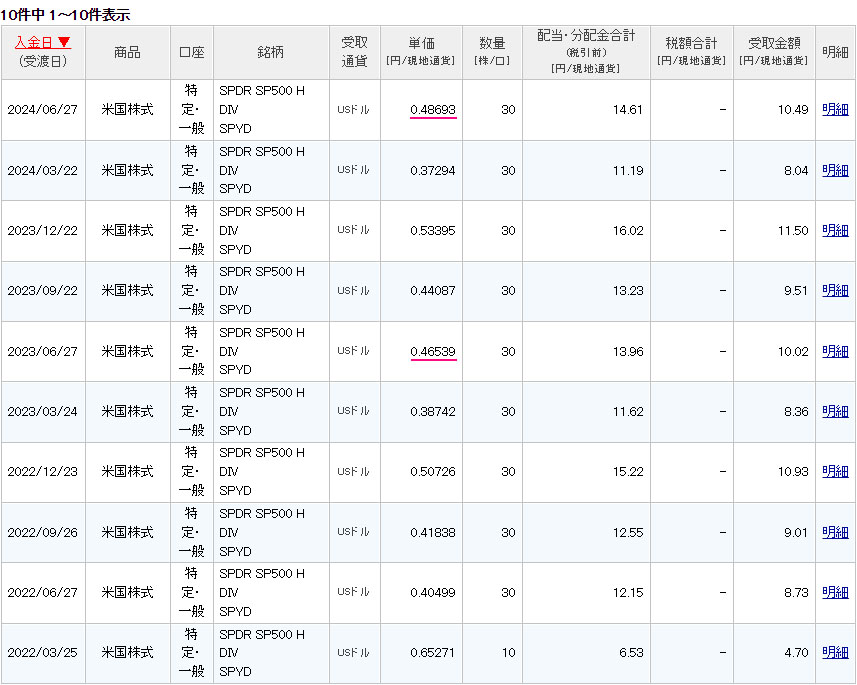 米国高配当ETF「SPYD」の配当が出ました。こちらは年4回の配当になります。