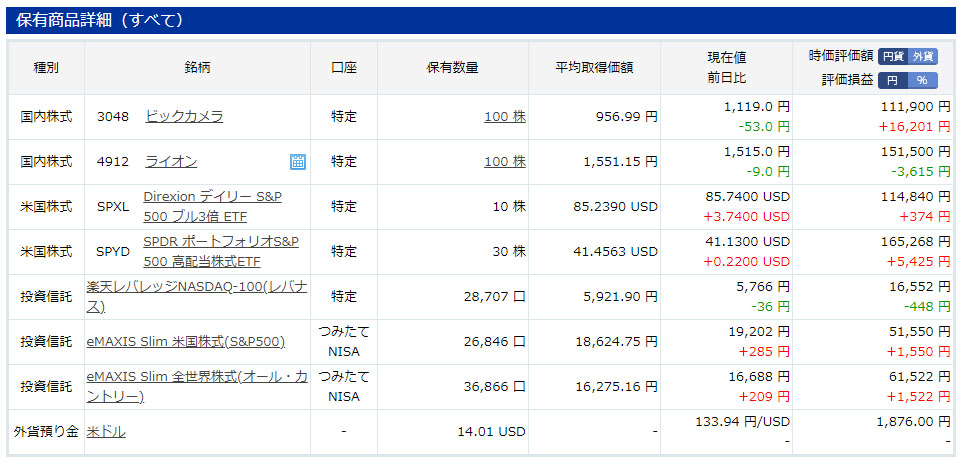 買ってからプラスになったことが無かったSPXLが今日はじめて評価益(+374円)になりました。