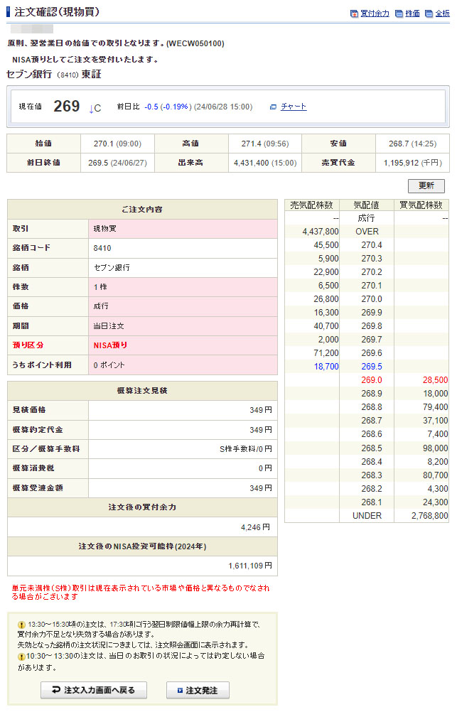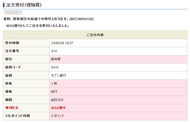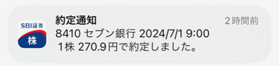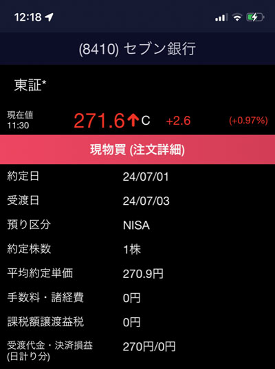 6月は見送りましたが今月(7月)はセブン銀行も1株追加します。