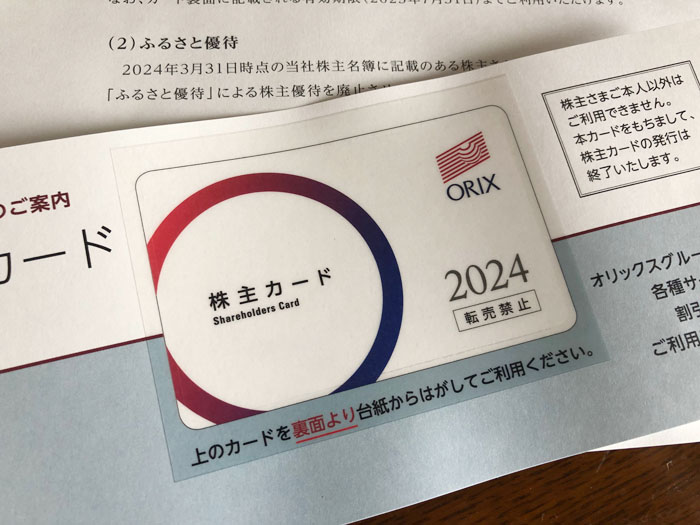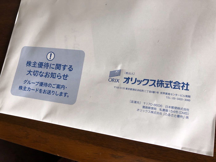 オリックス(8591)から株主優待に関する大切なお知らせが届きました|2024.7.3