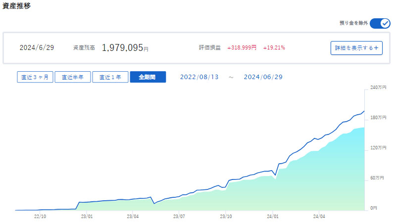 SBI証券も200を超えました。一時的?こちらはまだインデックスの割合が低いので流動的かも?まだ1年経ってないし。