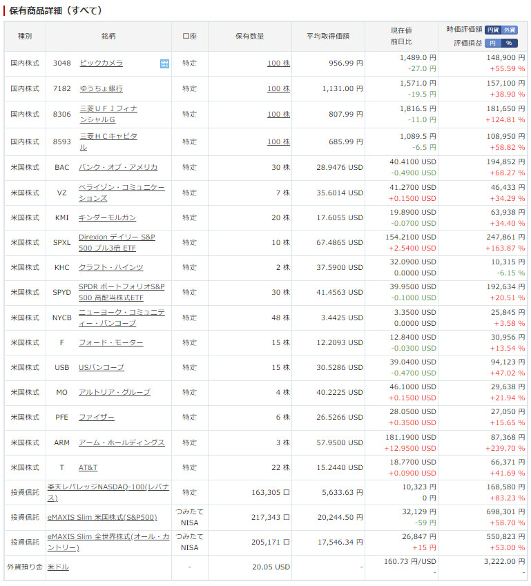 今は円安だし米日とも株高なのでみなさん含み益は間違いないと思います。