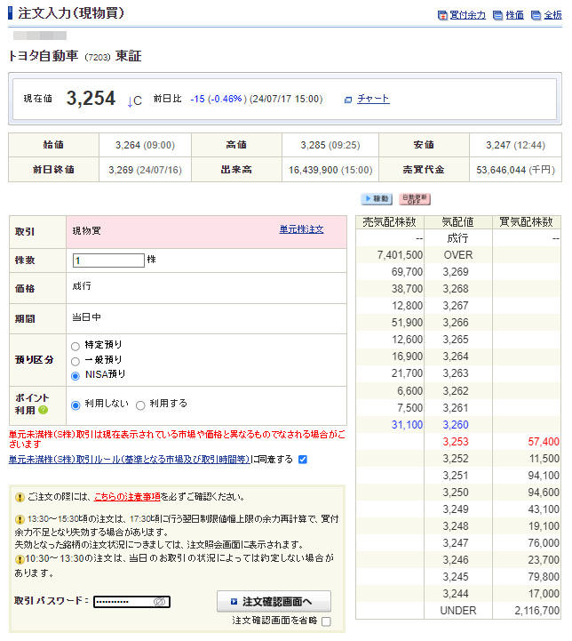 今日の終値は3,254です。私のNISA口座でのトヨタ自動車の平均取得単価は3,396なのでまだ100円以上の開きがあります。
