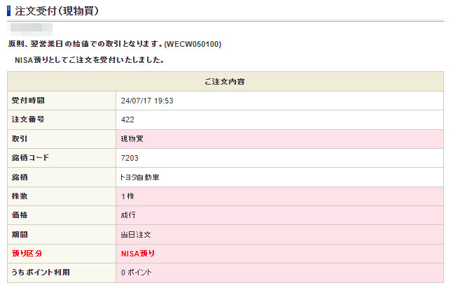 もうちょっと買いたいところですが19日から買付ができる「auAMレバレッジNASDAQ100為替ヘッジ無し」の資金も確保しておきたく・・・1株だけ。。。
