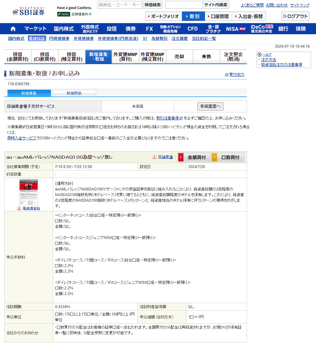 SBI証券では今日(19日)から予約の受付が開始されています。