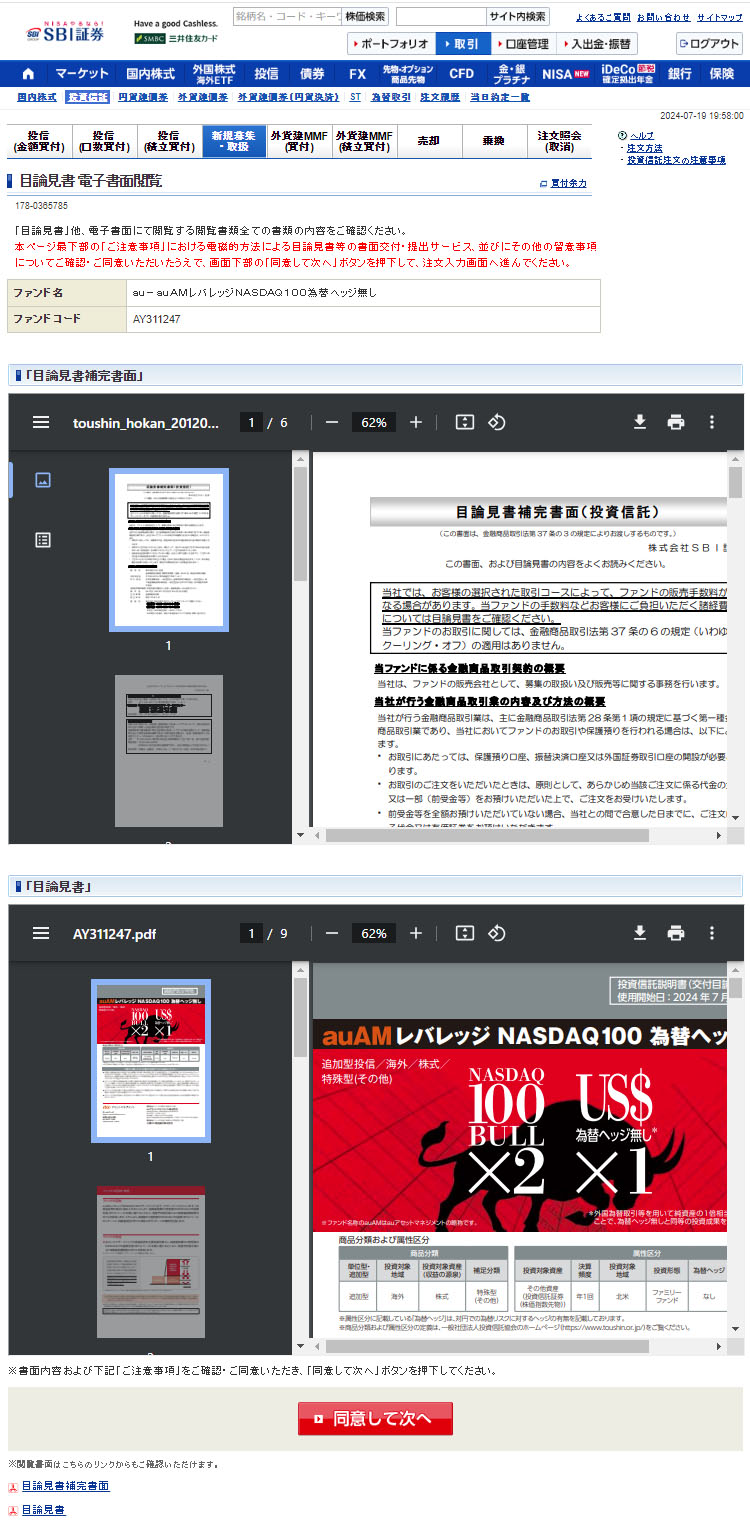 まずはじめに目論見書の確認を要求され閲覧します。