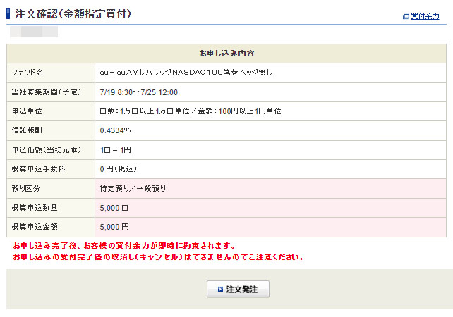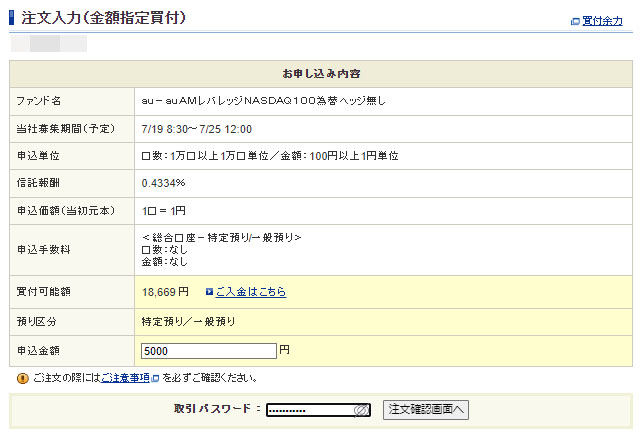 この後は普通に「投信」の買付と同様でした。