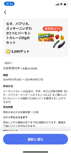 クラシルリワードのレシチャレ㉖ 久しぶりのレシチャレ! 今回は「ハウスバーモントカレー」です。 定番商品 最近は「Welcia」とのコラボばかりで買うものなかったけど・・・。今回は5,000コインとイマイチコスパは良くないが参加しました。カレーは好きなのでw 「バーモントカレー」と「なす」 今回は夏野菜も同時購入が必須になっています。 何時ものように簡単なアンケートに答えて送信!