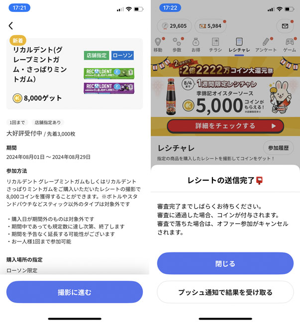 クラシルリワードのレシチャレ㉙ もう二度とやらね~と思いましたがまたレシチャレ。 ガム一つで8,000コインに目がくらみ・・・。 171円で3,000コインはなかなかのコスパ でもホントに入るの?何かさぁ~信用できなくなったよ