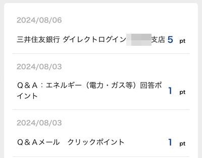 毎月、月初に入る「三井住友銀行ダイレクトログイン」分の5ポイント。