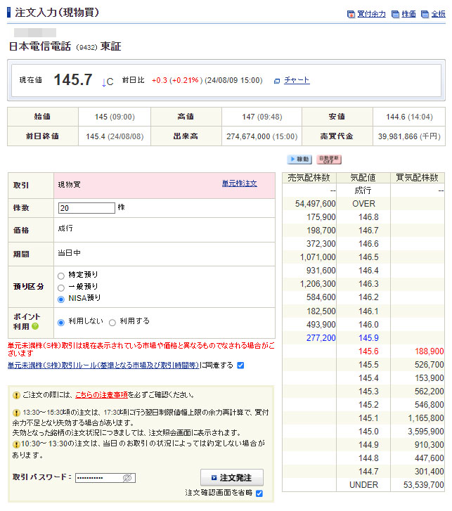 これでNTTはNISA口座で570株、特定口座で300株となりました。