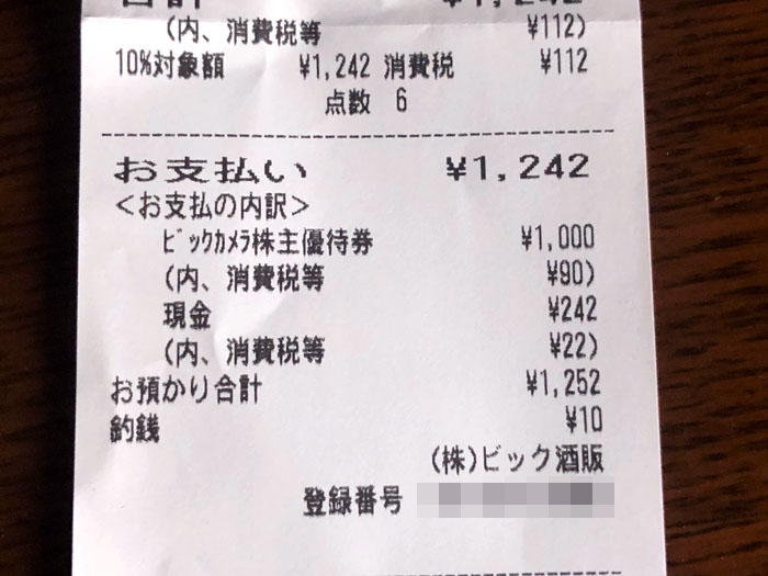 5月に貰ったビックカメラの優待券、残り1,000円分をまた発泡酒に交換してきました。このついでにクラシルリワードのレシチャレ商品もWelciaで購入。一石二鳥作戦www