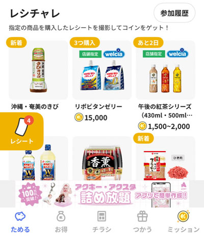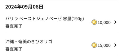 クラシルリワードのレシチャレ㉞㉟ またまたレシチャレです。 今回は「沖縄・奄美のきび」と「バリラ ペースト ジェノベーゼ」の2アイテムに応募しました。 何時ものイオンで同時購入。 「沖縄・奄美のきび」は15,000コイン 「バリラ ペースト ジェノベーゼ」は10,000コインです。 問題なく「審査完了」で25,000コインをゲット! お金をかけレシチャレしてコインを得るのはどうか?とも思うのですが基本食品なので消費財と・・・笑 言い訳ですけどね ちなみに、ログにはしていませんが「【食べチャレ】デルモントトマトケチャップを使ったナポリタ」というのにも応募して5,000コインをGETしています。 これでシルバー会員に昇格も果たしました!