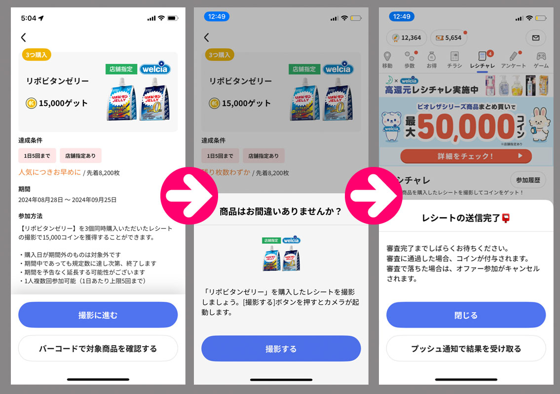 一つ目は以前も参加した「リポビタンゼリー」を3個同時に買うというものです。