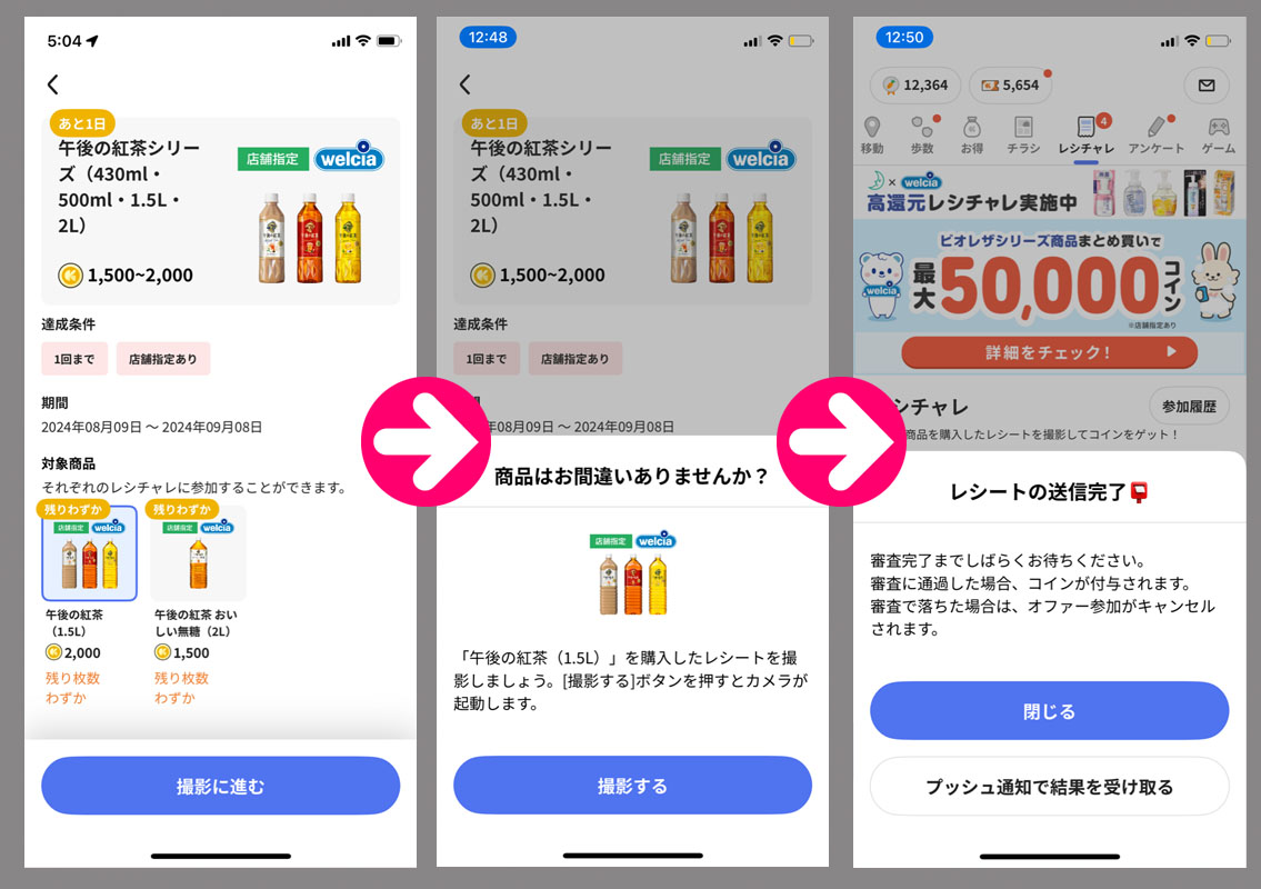 二つ目はこれも以前にも参加した「午後の紅茶シリーズ」で500mlを買ったので、こちらは1,000コインになります。やはり簡単なアンケートに答えて送信!