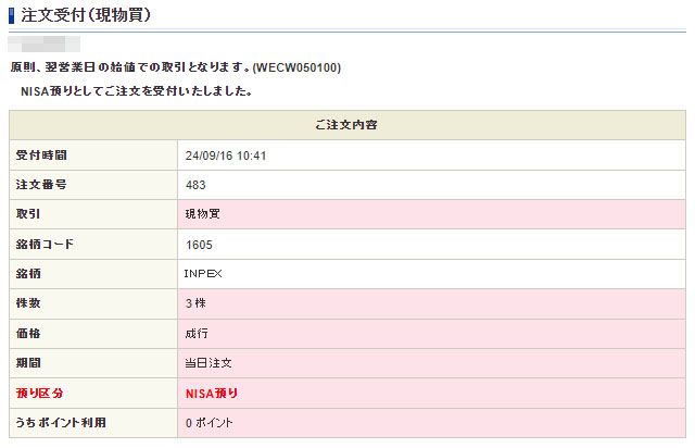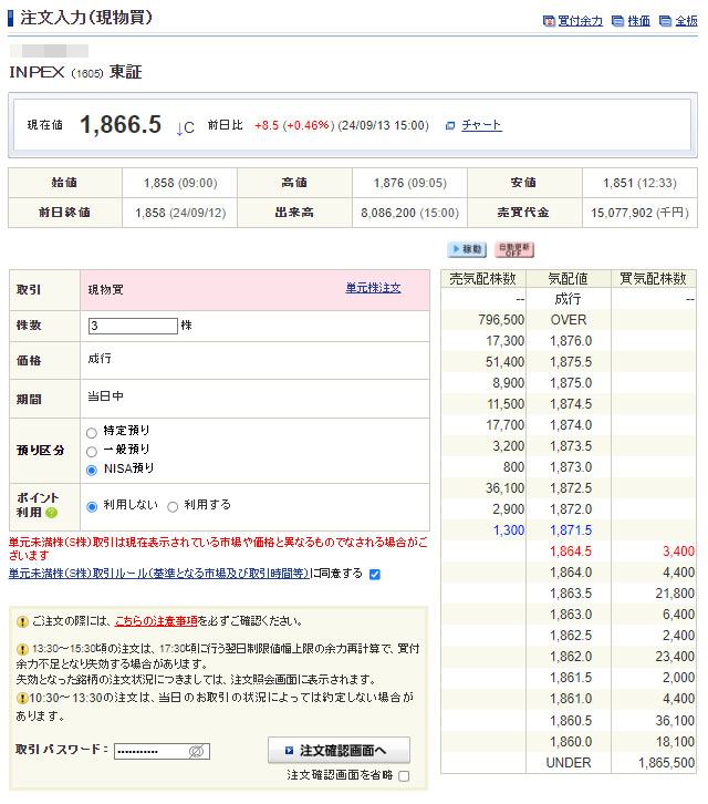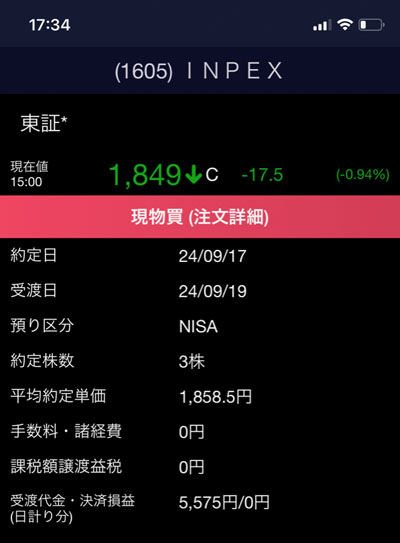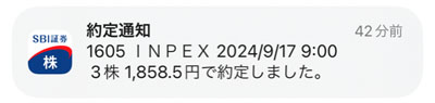 この3連休悩んで「高配当15銘柄」の入れ替えをし、早速、そのINPEXを3株だけですが買い注文を入れました。