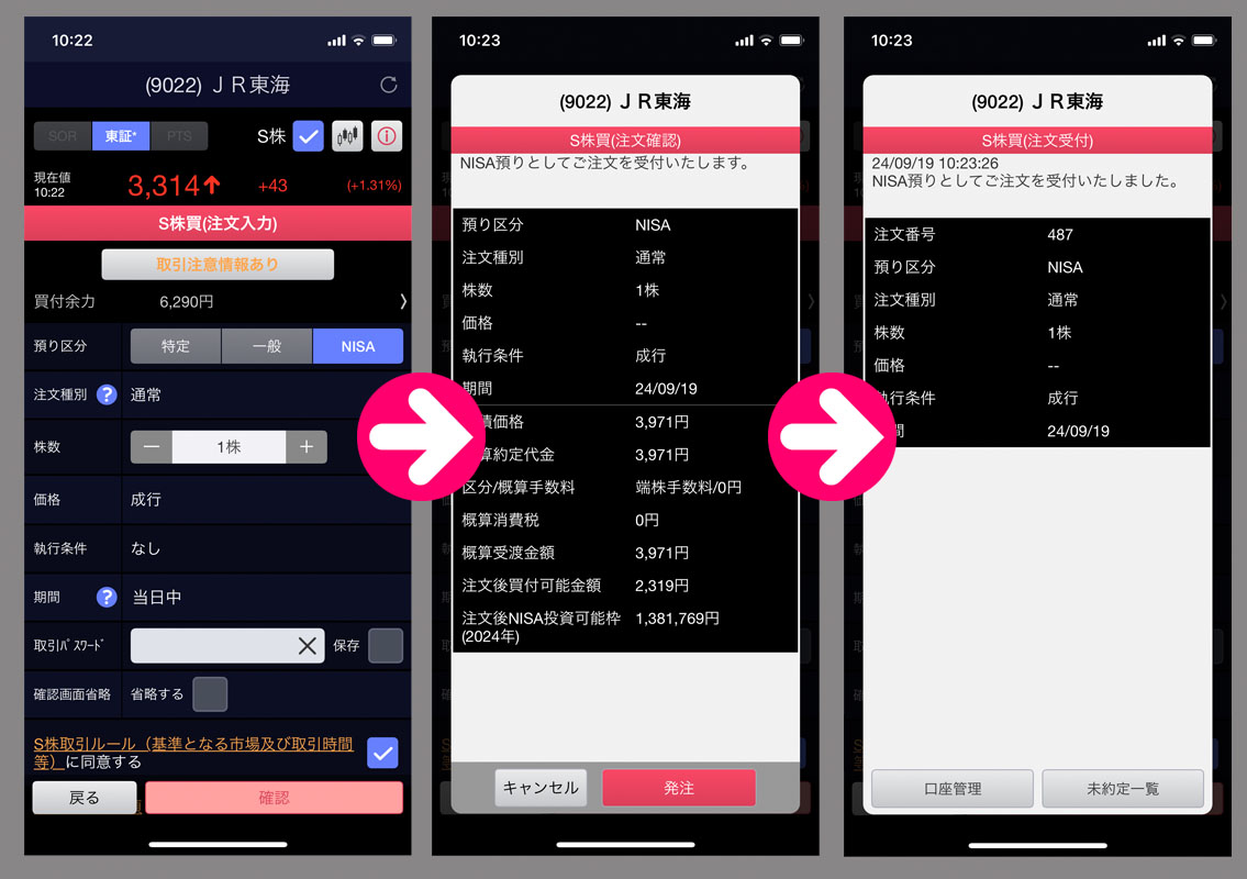 10:30前に買い付けたので後場の寄り向けでの約定となります。