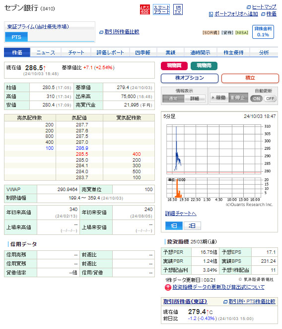 私も10株だけ保有しているセブン銀行。これで株価はどうなるのか?個人的には上がると・・・。