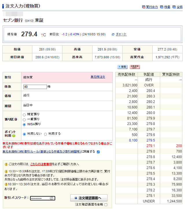 Bloombergのニュースで「7&iHDがセブン銀株の一部売却で非連結化を検討」を読み、セブン銀行(8410)を追加購入する事にしました。