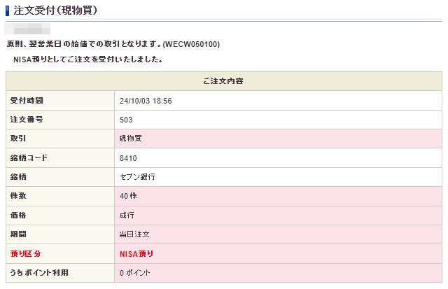セブン銀行は「機種変代わりに~」企画で買っているのですが今回はイレギュラーという事になります。ですので今月は「五洋建設」は買えませんね~ この買付でまたまた “前借り” が大幅に増加してしまった。。。