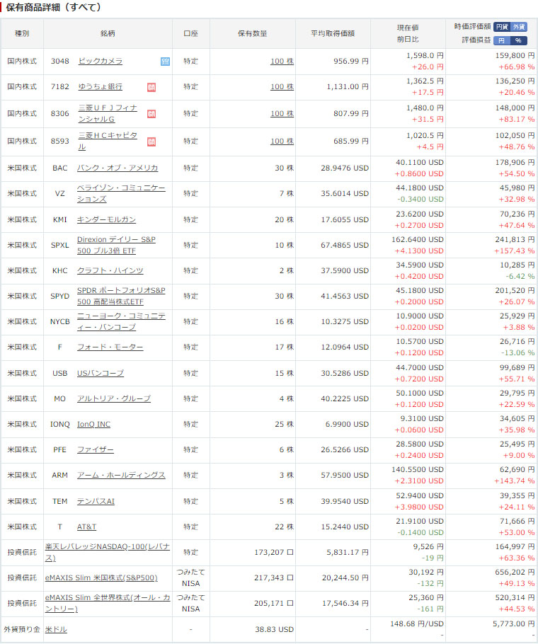 一昨日、米国が下げたので投信が下がっています。バリュー株に関してはここ3カ月ぐらいはあまり目立った値動きはない。TEMとIONQは毎日上がったり下がったりでまるでロディオかジェットコースターw 額も少ないので毎日楽しい。