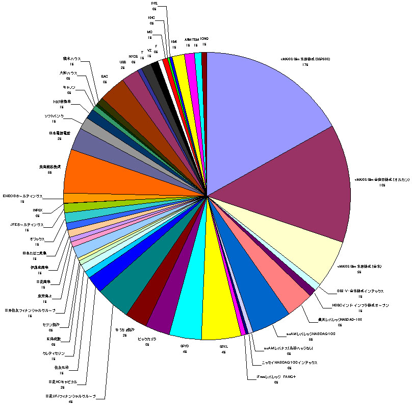 相変わらず株式だけ。債権もやってみたいがもう少し資産が増えないと面白みがないかな~と思いそれっきりです(研究はしていますw)。リート、仮想通過には全く興味ないです。