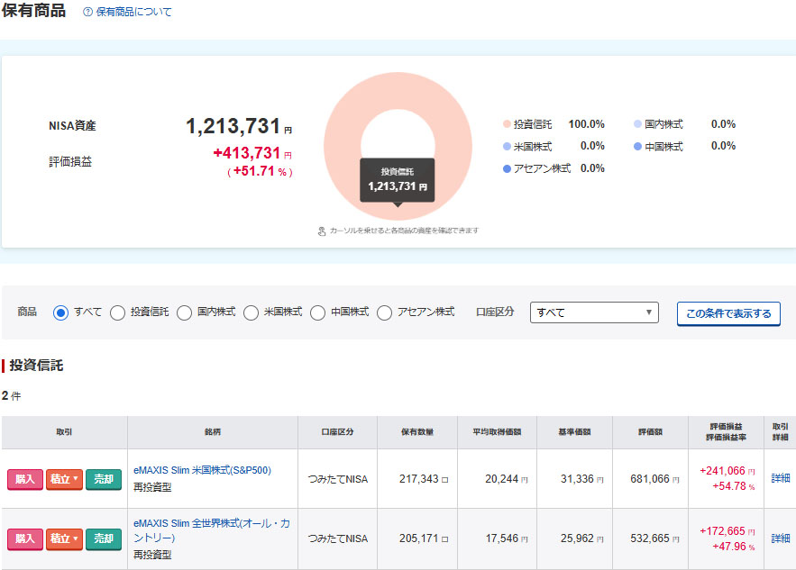 ファンドの方も前月からはマイナス。合わせるとSBI証券分だけでマイナス54,434円でした。