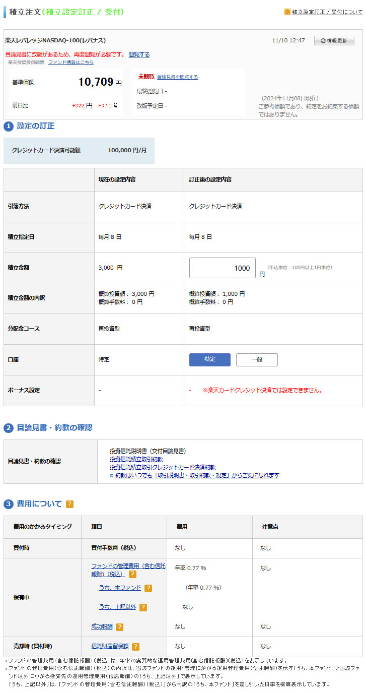 ファンドは変わりますが「レバナス」への積立投資の資金自体は変わらずで総額3,000円です。やはり投資をする以上は利益の最大化を目指さないとね!