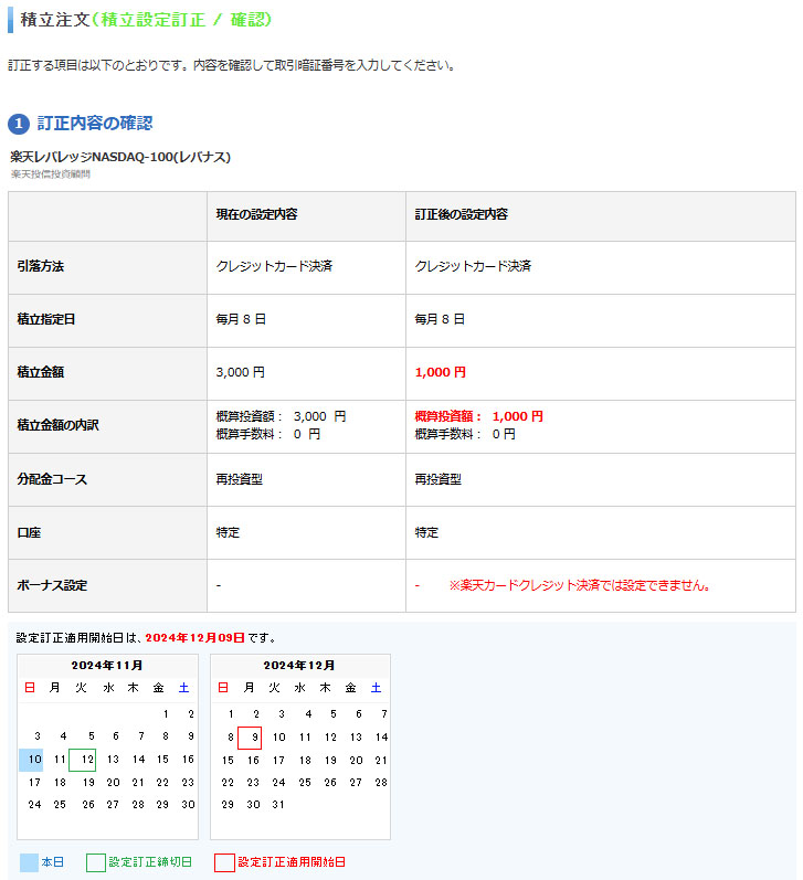 11月12日の締め切りに間に合ったので12月9日の引き落としは1,000円となります。