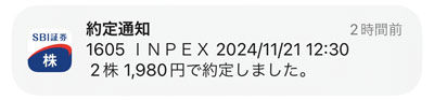 INPEXは2,000円以下なら買いだと考えていますので・・・とりあえず2株だしw