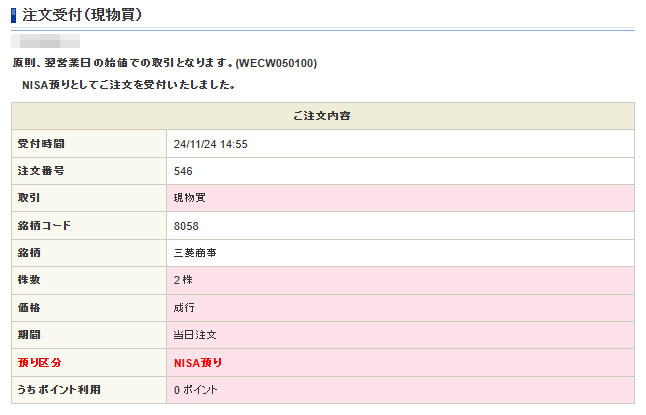 これで三菱商事は全てNISA口座で20株の保有となり平均取得単価は2,811になりました。17円下げられましたが、まだまだバリバリの含み損ですwww 年内はこれで三菱商事は終了の予定。