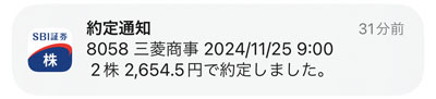 三菱商事の株価が下がり続けてるので2株追加します。