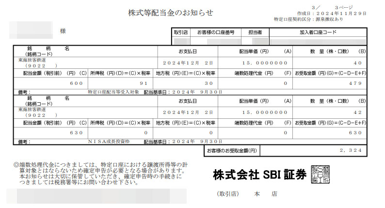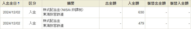 (受取金額は同日に出た別銘柄も込みなのでJR東海だけの金額ではありません)