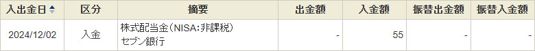 週明けの月曜日(12月2日)にセブン銀行から配当が入るようです!