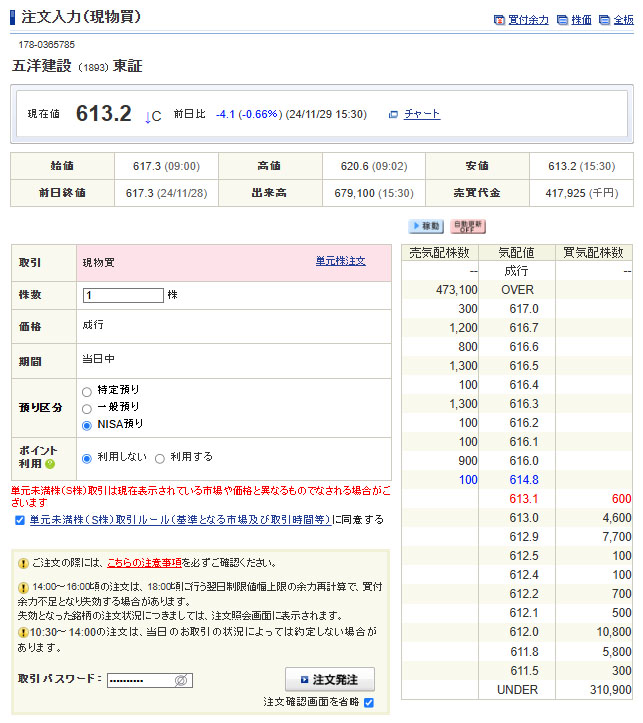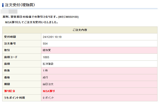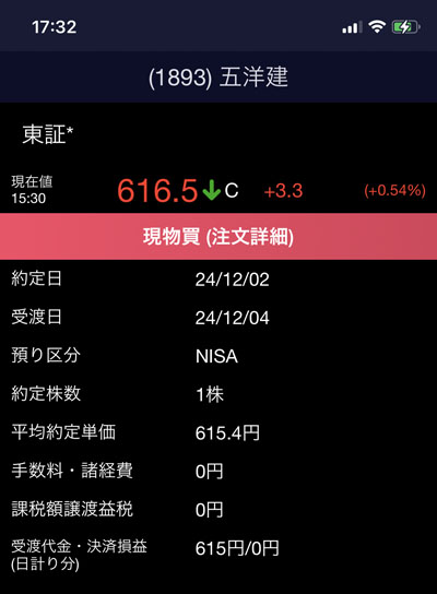「機種変代わりに」企画、今月も定期の「五洋建設」1株ですwww