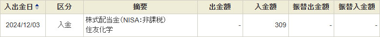 週明けの火曜日(12月3日)住友化学から配当が入るようです!