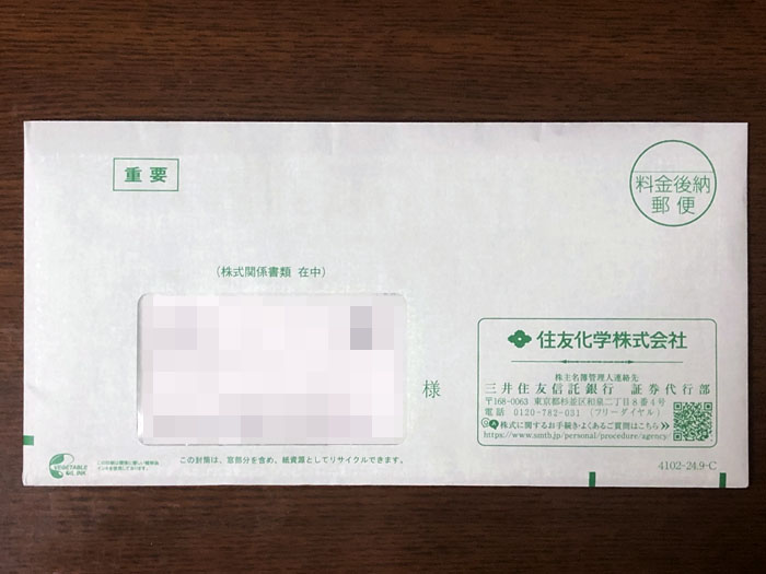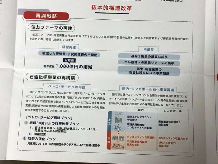 住友化学は含み損になっても(それが続いても)ホールドするつもりです。今年は行けませんでしたが来年は是非総会に!と思っています。折角単元持ってる銘柄なので。