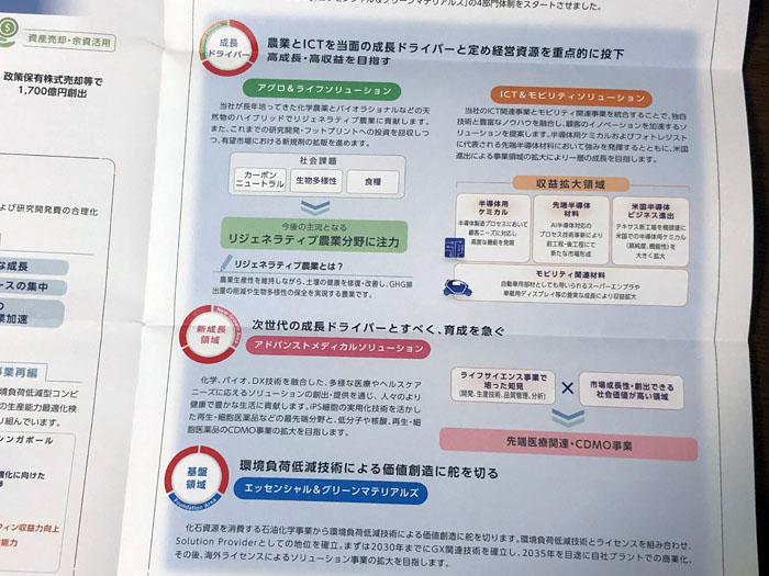 農薬とモビリティーですか・・・。ん~~~寡占化されてる分野なのでどう差別化が図れるか?ですが器が大きい会社だけに何かもう行き詰まってるような気もします。経営手腕に期待です。