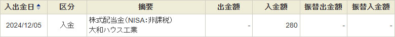 大和ハウス工業からは私にとっては2回目の配当が入りました。