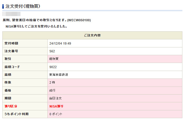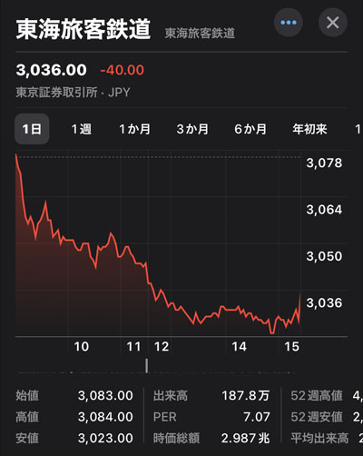 東海旅客鉄道(9022)を2株追加|2024.12.4