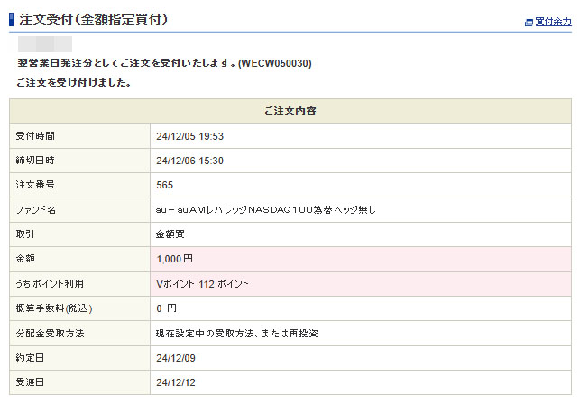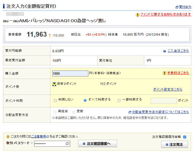 円ドル為替は150を超えていますが、今回もポイントが多かったので「auAMレバレッジNASDAQ100為替ヘッジ無し」へも1,000円分追加!もうルール無視w