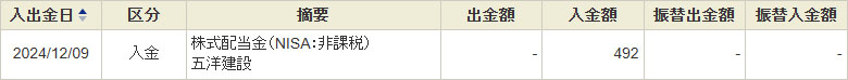 これを書いている時点では未来の事ですが・・・。「機種変代わりに~」企画で買っている「五洋建設」からはじめての配当が週明けの月曜日の12月9日に出ます。