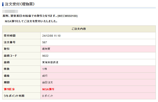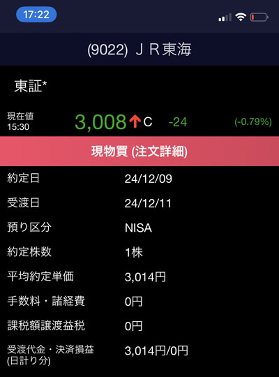 んで、JR東海がまた下げてるの今回は1株だけ買う事にしました・・・暇つぶしw