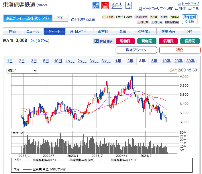 ここ3年のチャートを見ると3,000近辺で反発はしてるのですが・・・